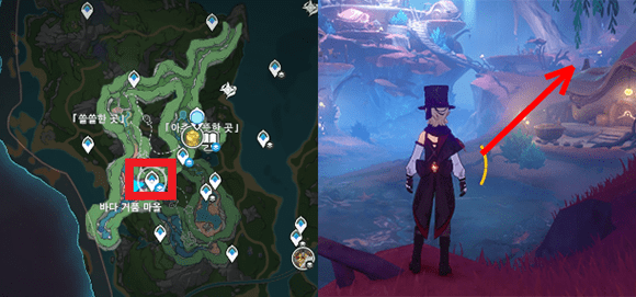 용용쿠키 레시피 위치 나타 샘솟는 땅 워프 포인트로 이동합니다. 그 후 동쪽(빨간 네모)으로 이동하여 해당위치에 도착해서 낙하 하다 보면 뚤려있는 공간에 몬스터 4명이 보일겁니다. 간단히 잡고 상자를 열면 용용 쿠키 레시피를 얻을 수 있습니다....