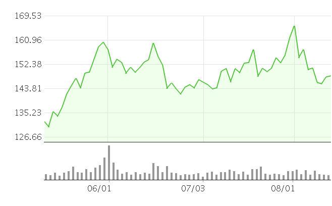 그러나 이후 주가는 하락세를 보이고 있으며, 2023년 3월 현재 주가는 140달러 수준입니다.