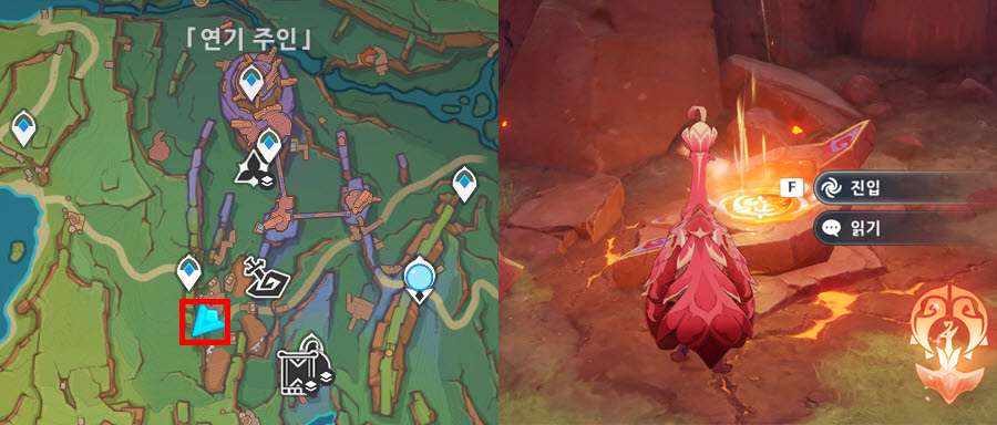 사건은 언제나 갑작스레 찾아온다 위치 시작 위치는 연기 주인 부족 남쪽에 위치해 있습니다. 퀘스트의 시작을 위해서 우선 깃룡으로 빙의해야합니다. 그 후 빨간 네모 위치에 가면 깃룡이 진입할 수 있는 장소가 있습니다. 깃룡으로 진입해줍니다. 퀘스트...